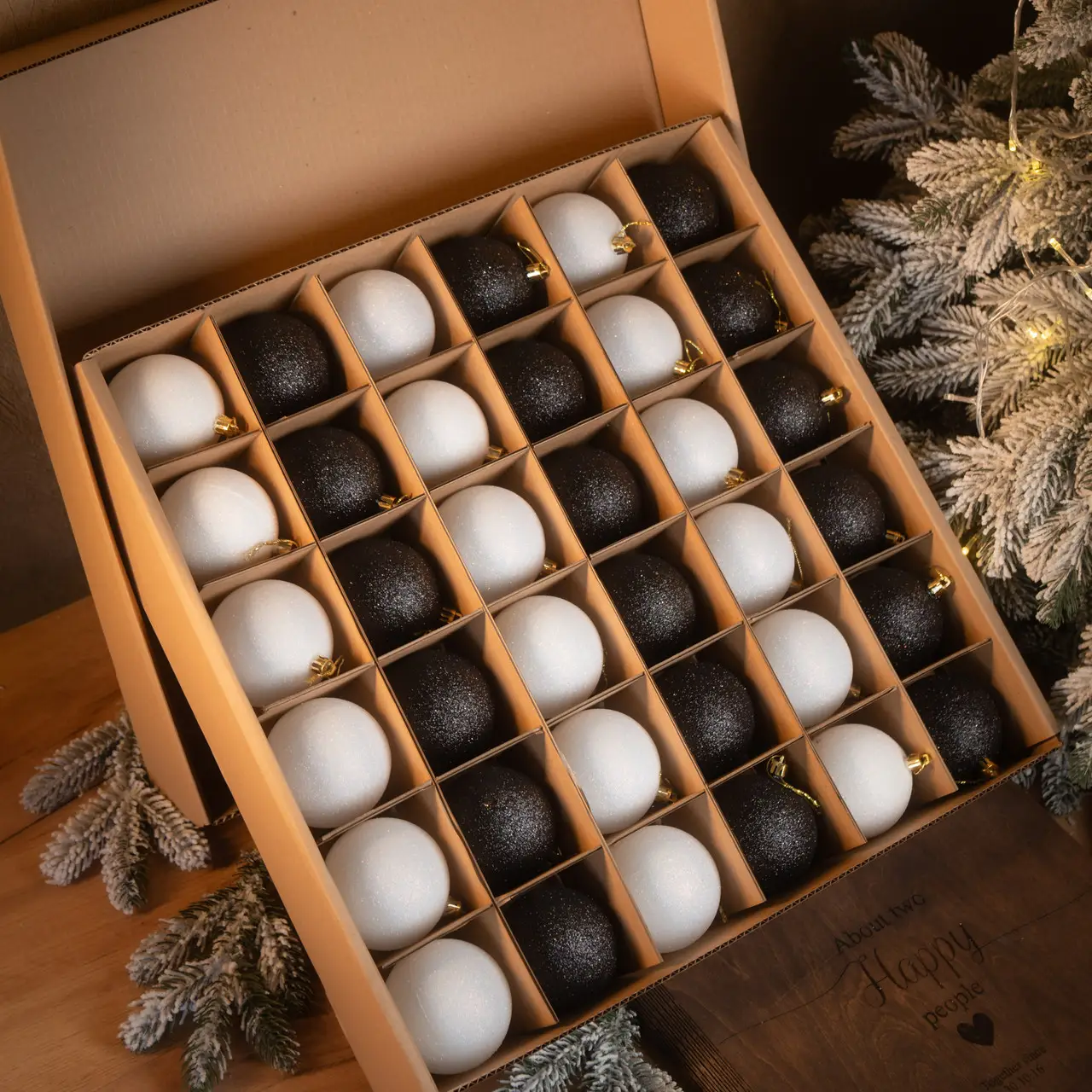 Сучасний дизайн, трендові кольори та бездоганна гармонія у кожній деталі. Чорно-білі та чорно-золоті набори створюють преміальний вигляд ялинки, додаючи святу елегантності та характеру. Ідеальний вибір для тих, хто хоче прикрасити дім зі смаком та отримати результат, як у професійному декорі