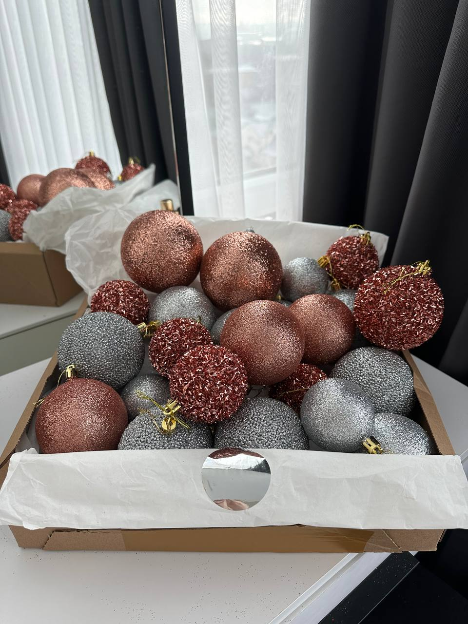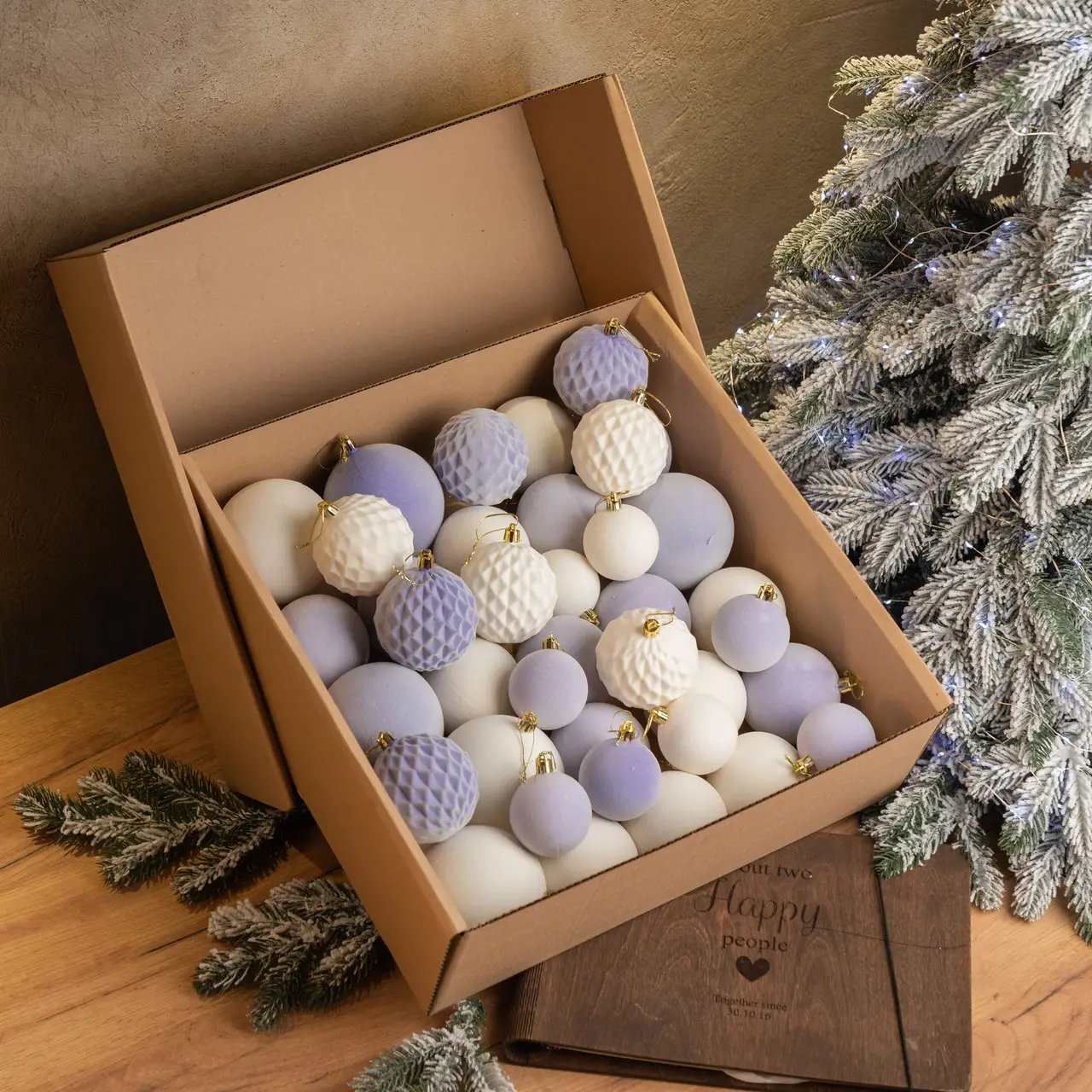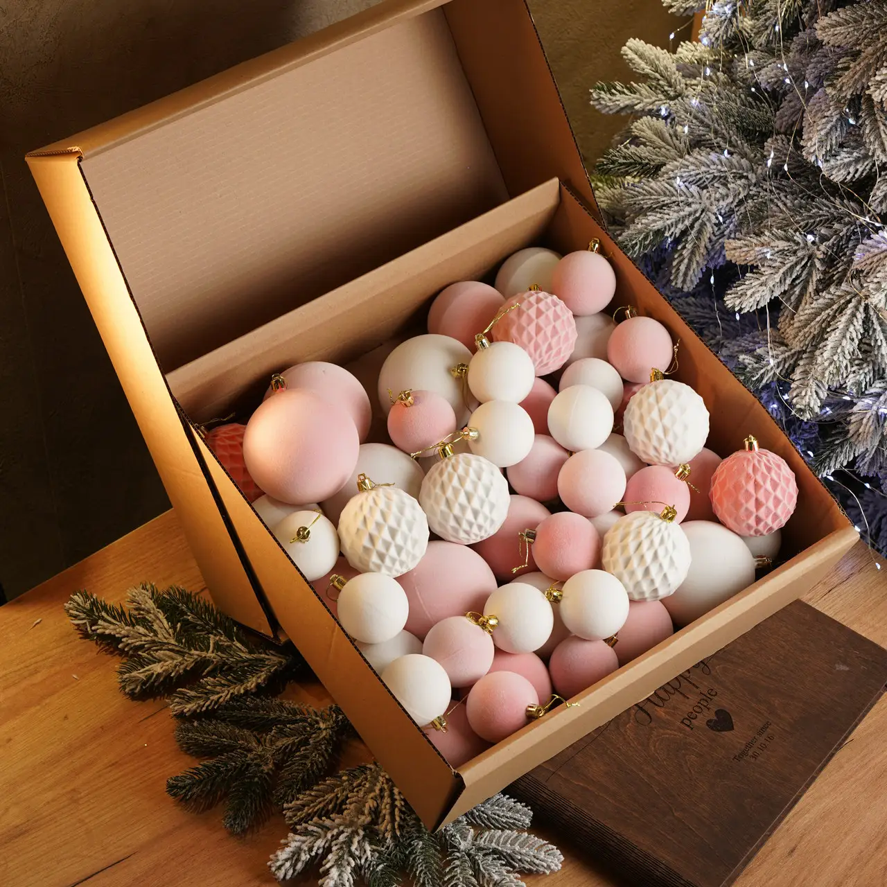 Набір новорічних куль 40 шт. у ніжних тонах. Вишуканий комплект матових та рельєфних куль у трендовій палітрі. Ідеально поєднуються з будь-якою новорічною ялинкою — створюють атмосферу затишку, ніжності й справжнього свята.
