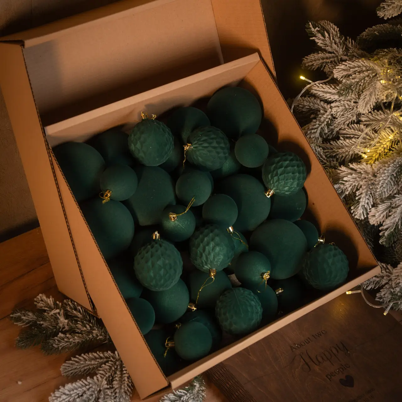 Створіть настрій справжнього свята! Наші набори куль 40 шт представлені в різних кольорах та текстурах — від ніжних відтінків до глибокого смарагду й класичного червоного. Кожна прикраса має міцне покриття та легку вагу, що робить їх безпечними для дому з дітьми й тваринами. Іграшки ідеально поєднуються між собою, дозволяючи створювати як класичний, так і сучасний стиль ялинки.