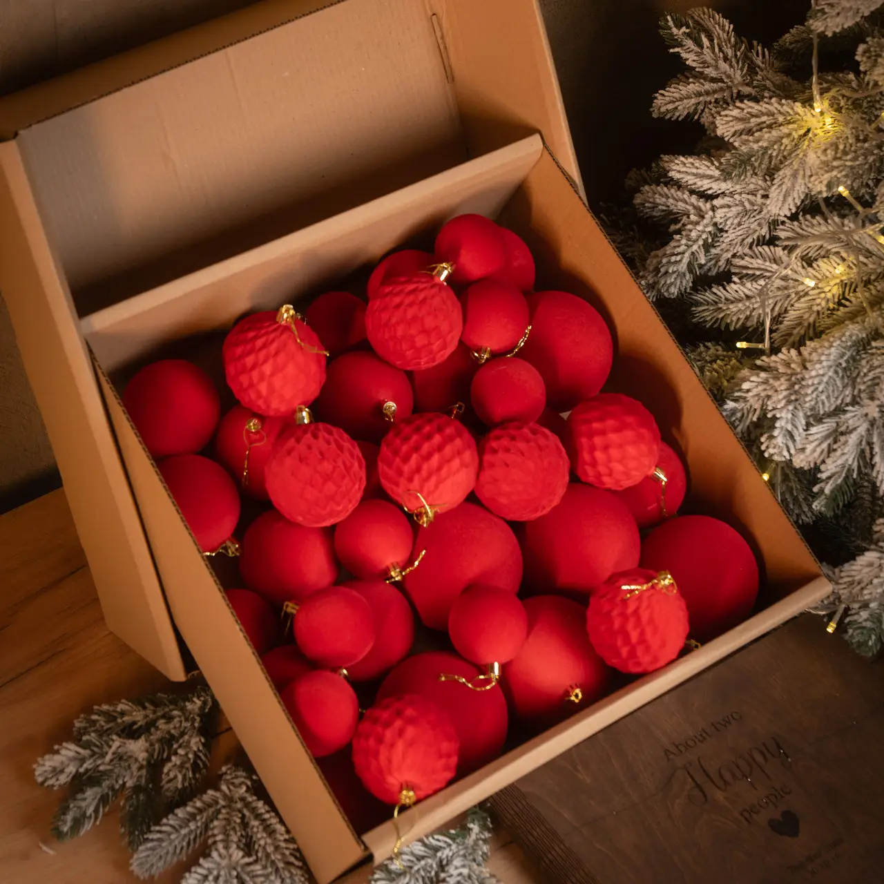 Класика, що завжди в тренді! Насиченого кольору матові кулі з елегантною текстурою створять теплу, святкову атмосферу і додадуть ялинці справжнього різдвяного шарму. Упаковані в окремі секції — для зручного та безпечного зберігання.